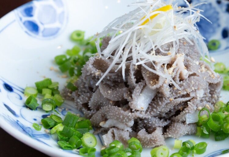 4つある胃のうちの「第三胃」です。センマイ刺し、ウマイですよね。ポン酢で食べてもよし、酢味噌でたべてもよし。
